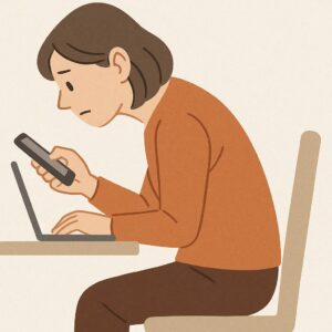 特にデスクワークやスマホの長時間使用によって猫背が進むと、胸椎や頸椎に負担がかかり、肩甲骨まわりから腕にかけて神経の通り道が狭くなります。これが「背中の痛みと手の痺れ」が同時に起こる代表的なパターンです。