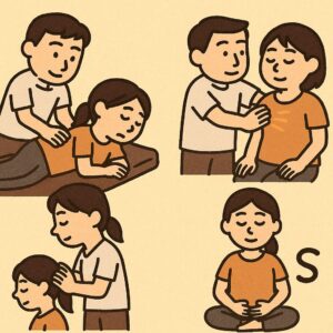 • 丹田呼吸法の指導:自律神経を整え、慢性的な緊張を改善