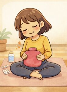 ※生理中に痛みが強い日は無理に伸ばさず、呼吸と温めを優先してください。